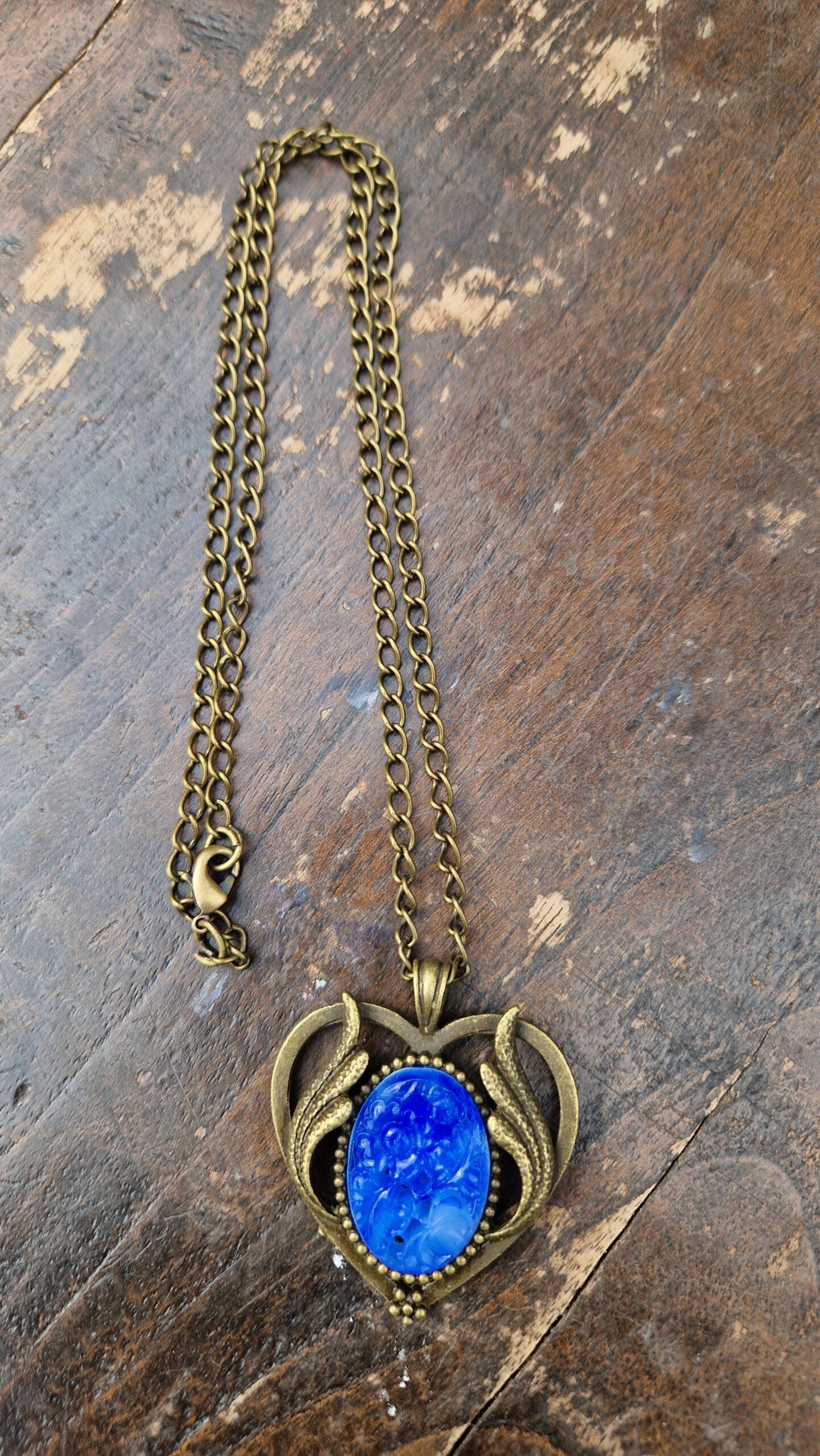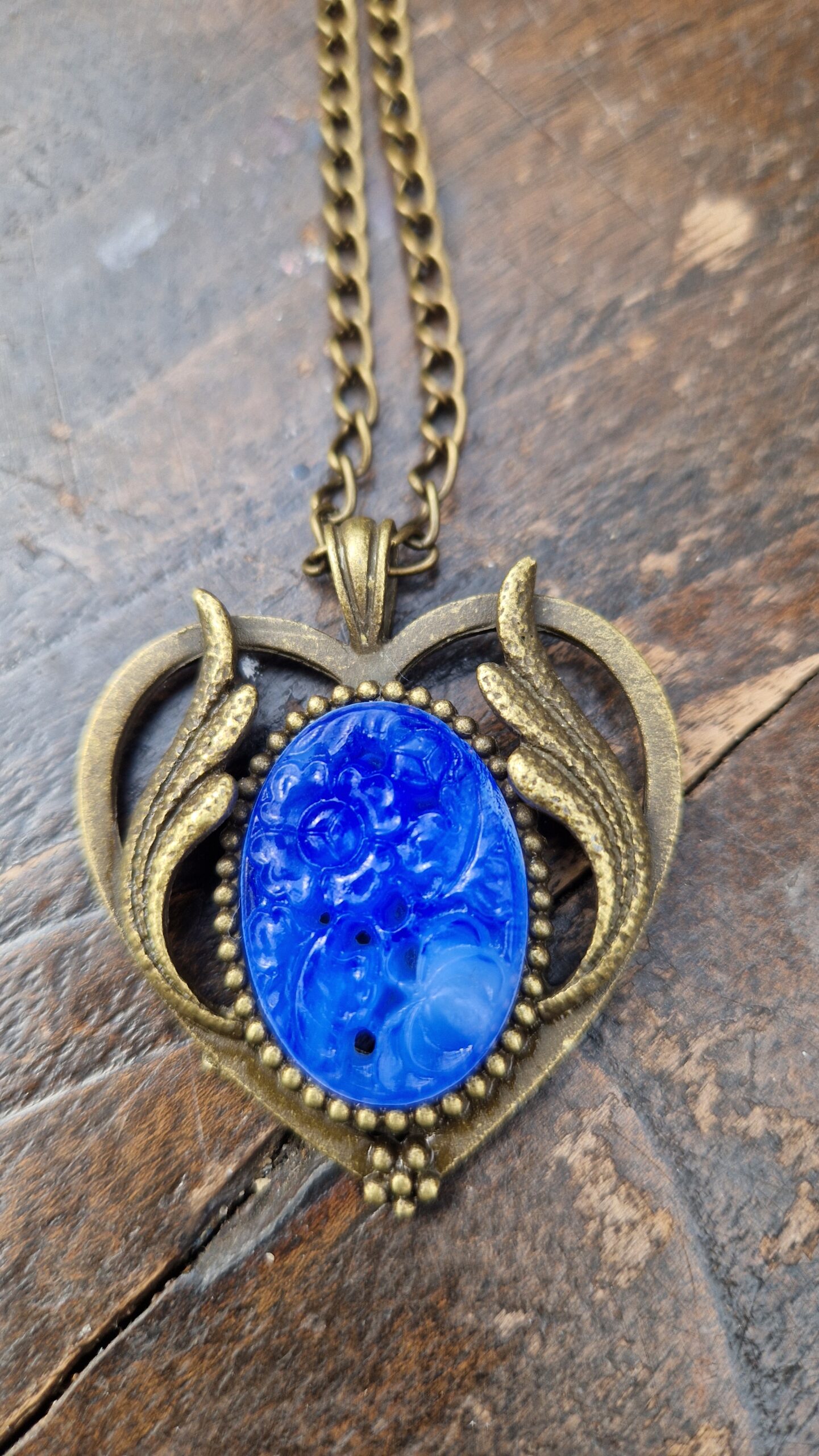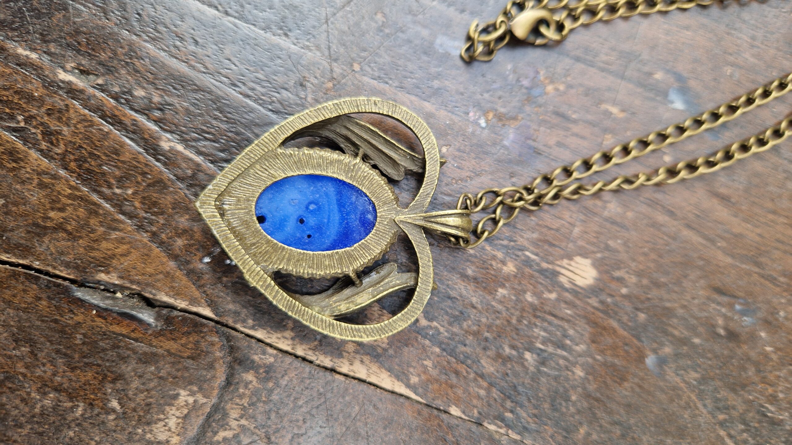 Nu in een messinghanger gezet met een lange ketting van ruim 60 cm.