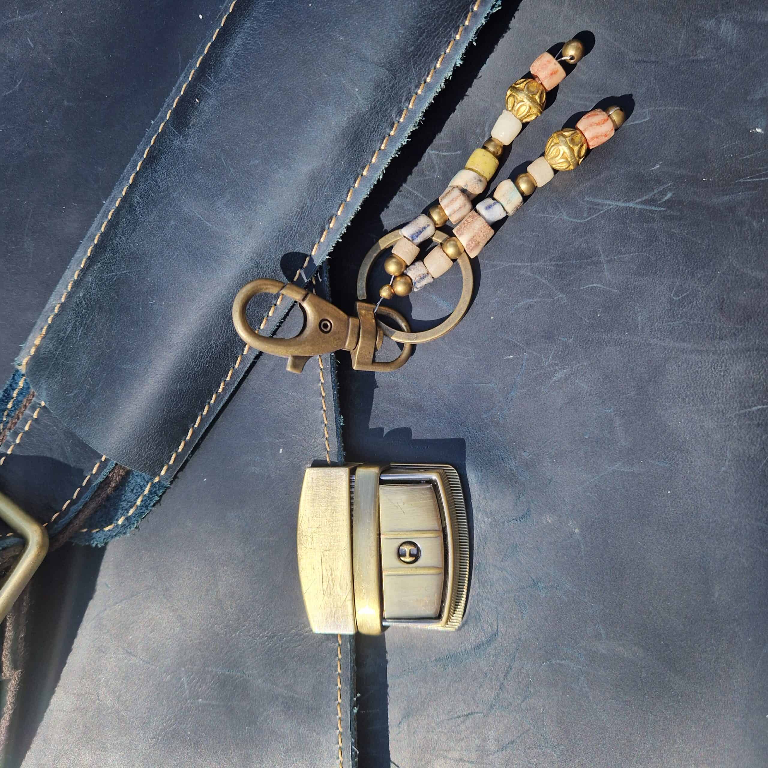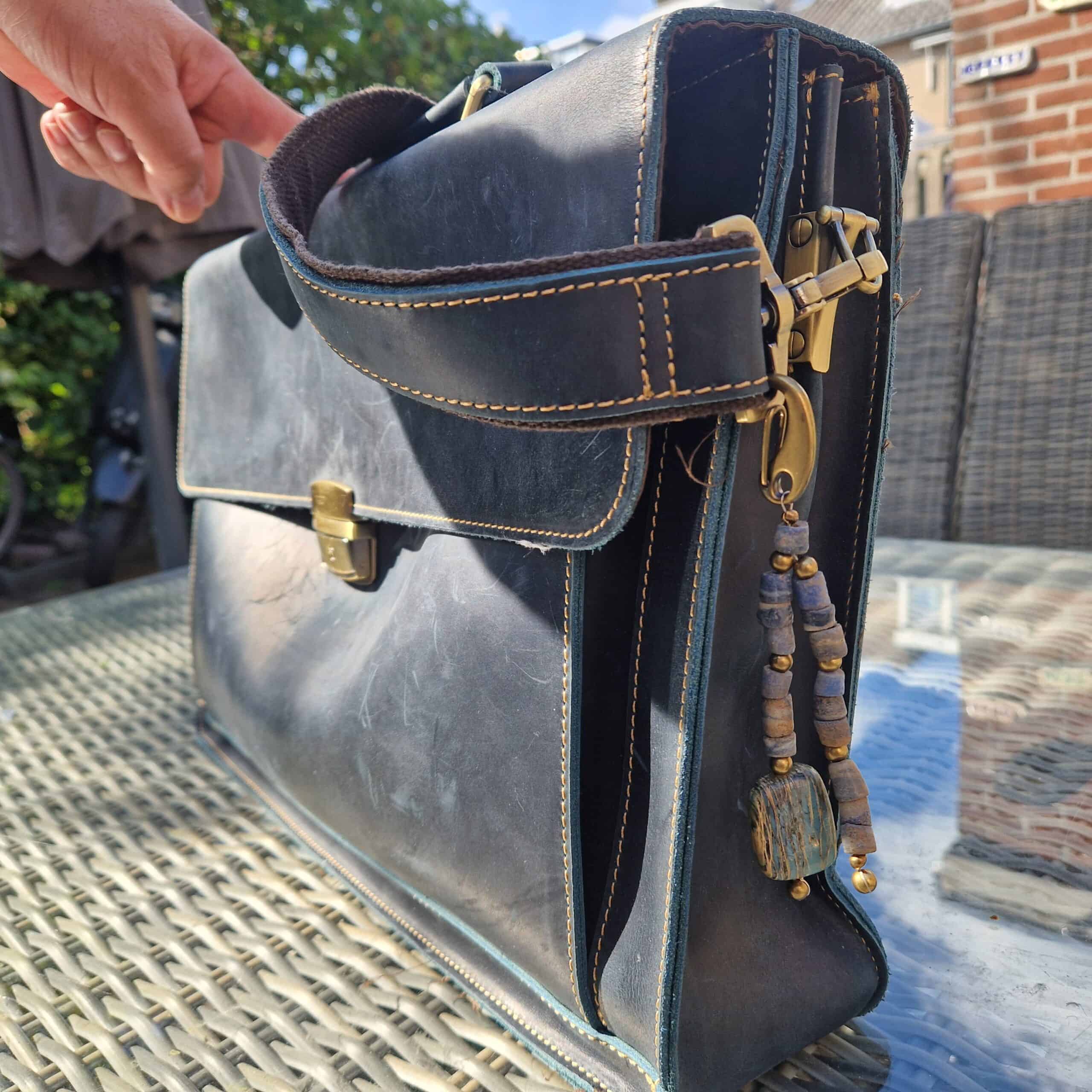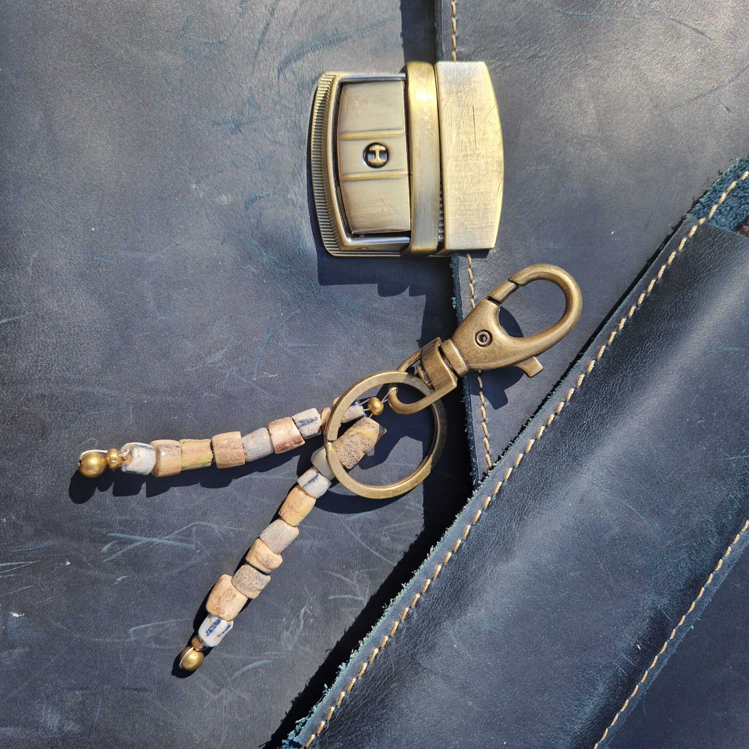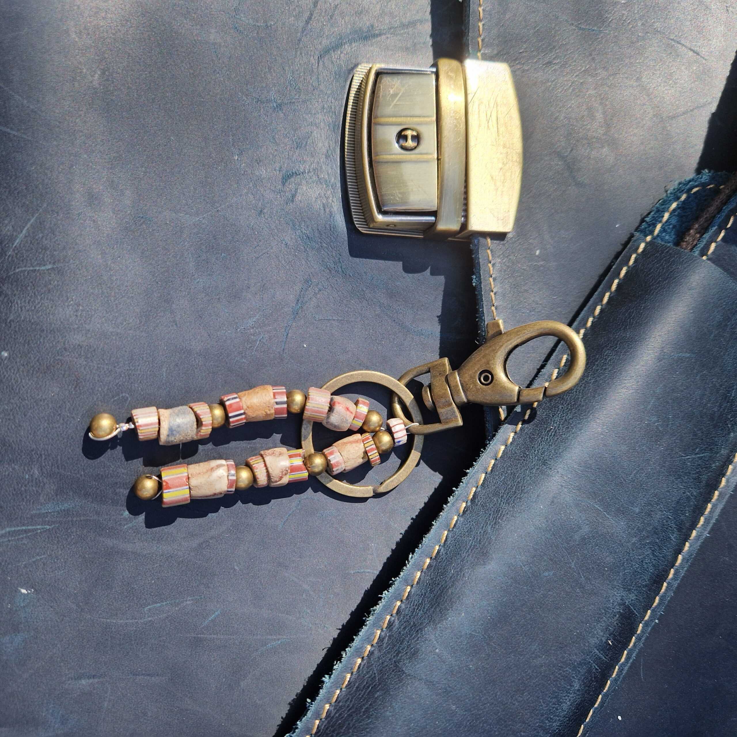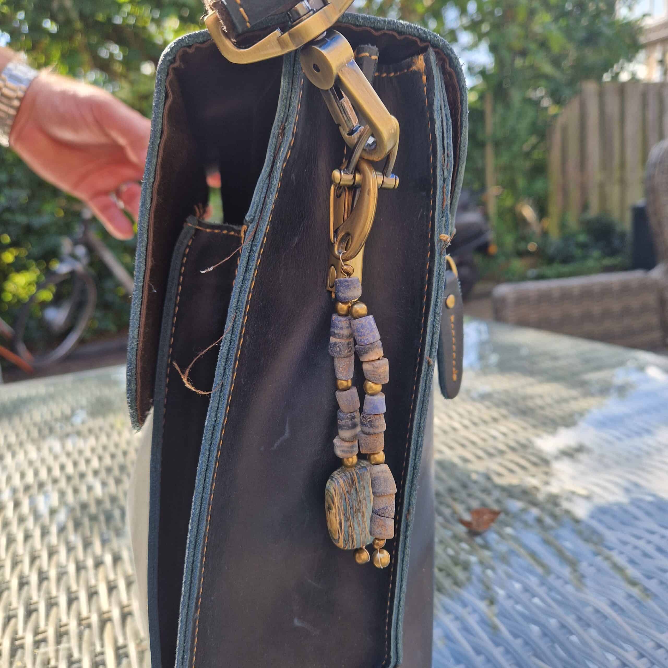 Deze tas hanger is gemaakt van handelskralen uit Ghana uit de jaren 30.